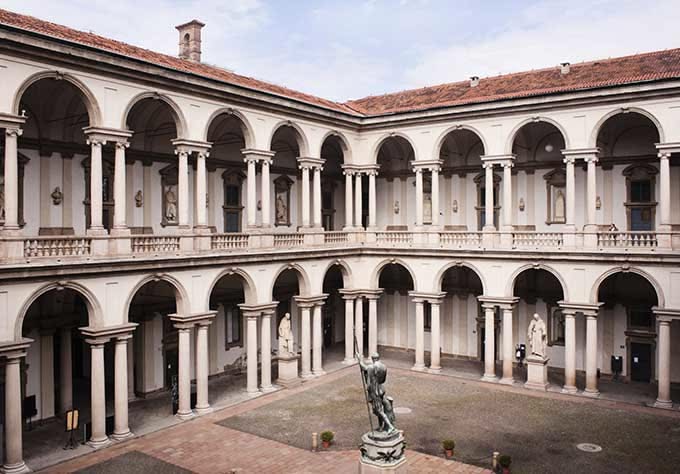 La Universidad de los Estudios de Milán, conocida más comúnmente como Estatal de Milán, es la institución universitaria más importante de toda la Lombardía. Pero también destaca por alojarse en un edificio renacentista y bellísimo: la _Cà Granda _de los Sforza. Los claustros de la Statale son las zonas más famosas y frecuentadas de la Universidad porque todos los estudiantes pasan por aquí para ir de una clase a otra. Entre los que repiten los apuntes antes de un examen, los que intentan ligar o los descansan al pie de una columna, el ambiente es simpático y acogedor. Y más si hace sol.8. La Pinacoteca de Brera